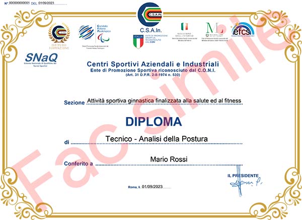 Nei giorni immediatamente successivi al superamento del corso verrà emesso il Diploma Nazionale emesso direttamente dallo CSAIn | eps CONI.